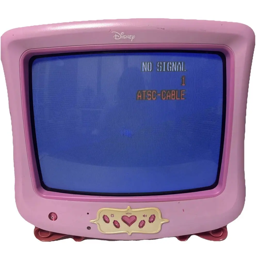 Being a CRT model, the Disney P1310ATV has a bulkier and heavier design compared to modern flat-panel TVs, limiting portability. It lacks digital inputs such as HDMI, limiting compatibility with contemporary media devices and high-definition content. The screen resolution is standard definition with visible scan lines and lower refresh rates compared to modern displays. There is no smart TV functionality or internet connectivity, restricting access to streaming services or apps. Power consumption is higher relative to newer LCD or LED models. The TV does not support widescreen 16:9 aspect ratio natively, mostly displaying content in 4:3 format, which could result in letterboxing for widescreen media.