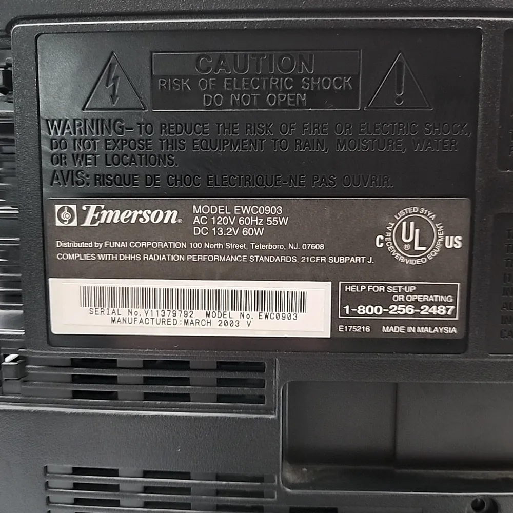 The Emerson Ewc0903 offers a compact form factor ideal for small spaces, such as kitchens or dorm rooms. Its simple analog control system allows straightforward operation without complex menus, making it user-friendly for all ages. The cathode ray tube technology provides natural image rendering with no motion blur characteristic of CRT displays. The unit is energy efficient compared to larger CRT models due to its smaller screen size. Its built-in RCA inputs make it compatible with classic video sources like VCRs and game consoles from the era. The durable Emerson construction ensures a long service life under typical home use conditions.