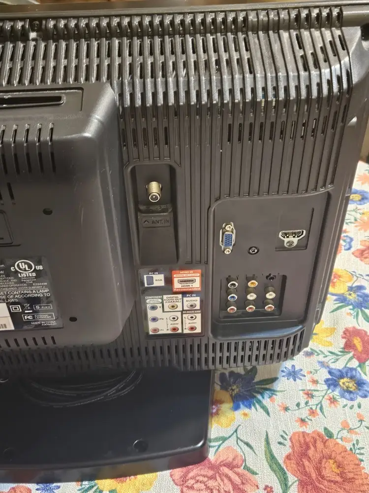 The TV includes an integrated tuner supporting analog broadcast signals, suitable for analog cable or antenna sources available at the time.