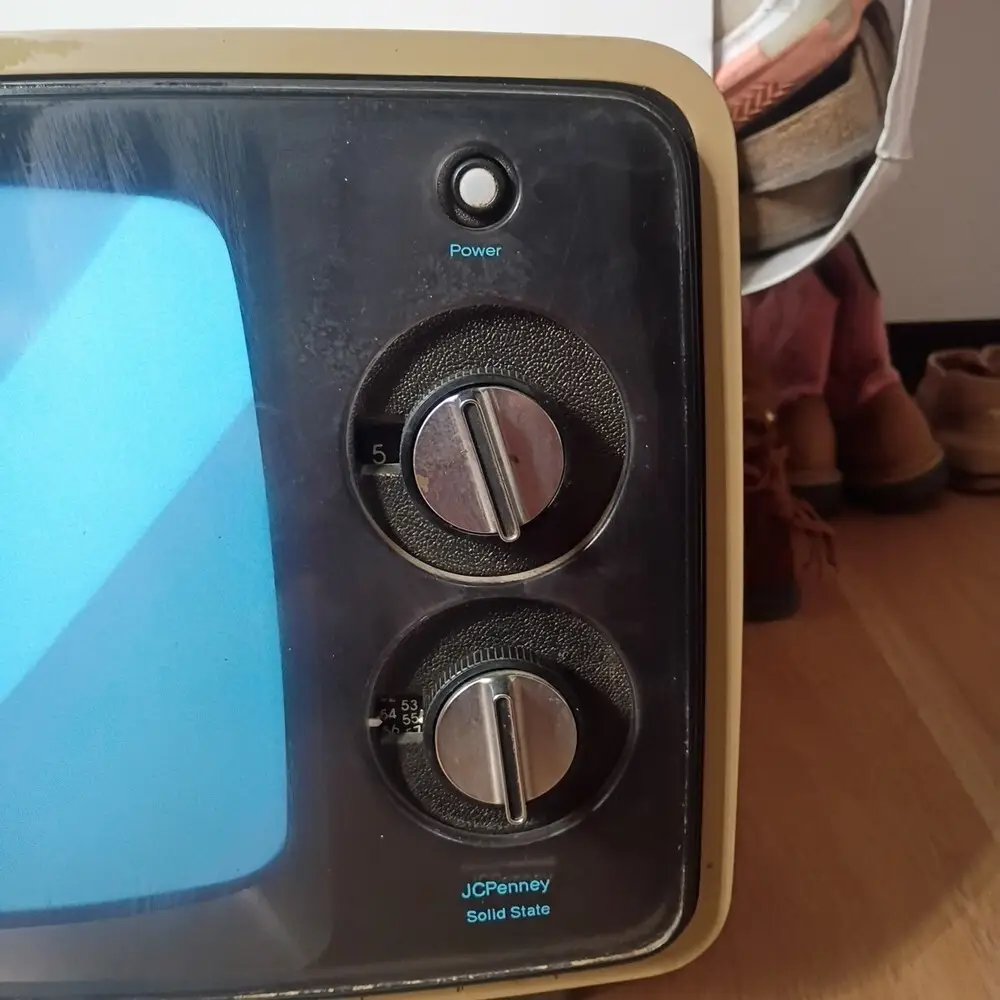It uses a cathode ray tube (CRT) display typical of TVs from the 1970s.