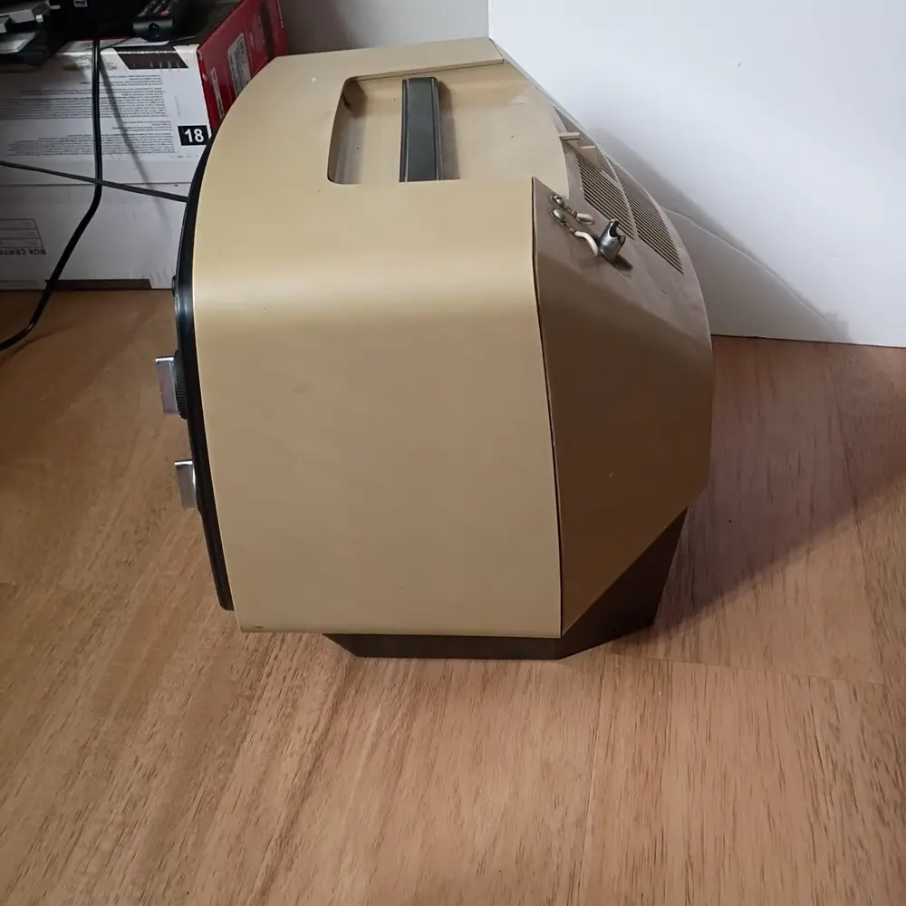 The television's display was limited to standard definition CRT technology, resulting in a lower resolution image by modern standards. Its connectivity options were minimal, lacking modern inputs such as composite or HDMI. The screen size and aspect ratio were restrictive, limiting viewing comfort and content compatibility. Without remote control functionality, all adjustments had to be made manually on the unit. The solid-state circuitry, while advanced for the time, lacked features such as color enhancements and digital signal processing. Availability of replacement parts for this model is limited due to its age and discontinued production.