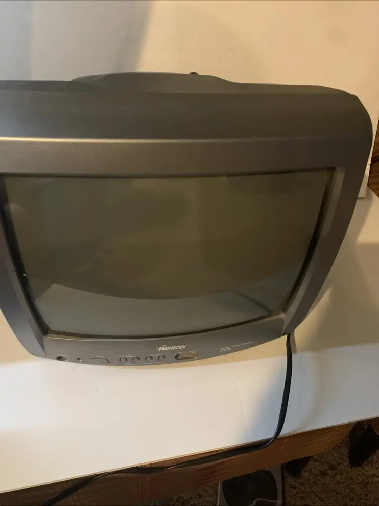 The TV has a 4:3 aspect ratio characteristic of CRT televisions from that period.