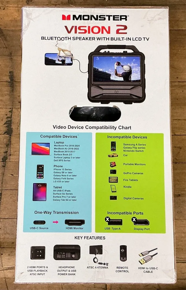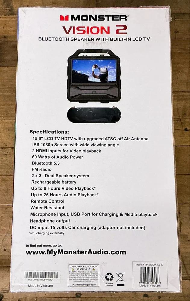 The Monster Vision 2 benefits from robust CRT technology providing deep contrast and reliable display performance without input lag. Its analog input versatility enables usage with various legacy video devices including VCRs and early game consoles. The built-in stereo speakers offer decent audio reproduction for casual viewing experiences. Physical buttons combined with remote control improve user interface flexibility. The TV’s simple design ensures ease of repair and availability of replacement parts. It also features basic but effective surge protection to safeguard against power fluctuations.
