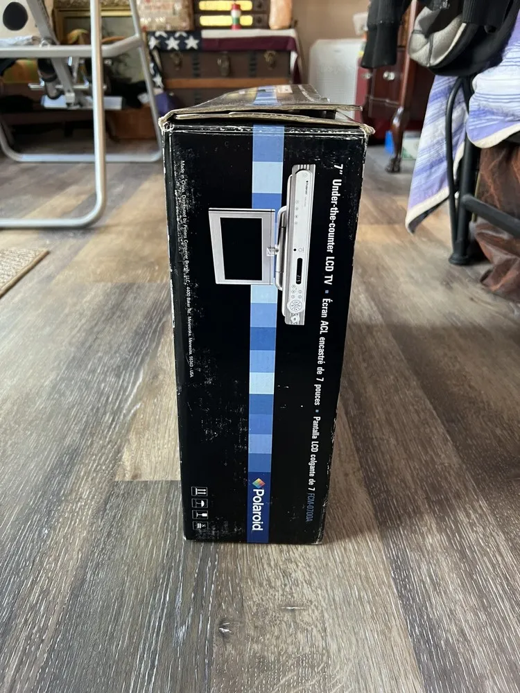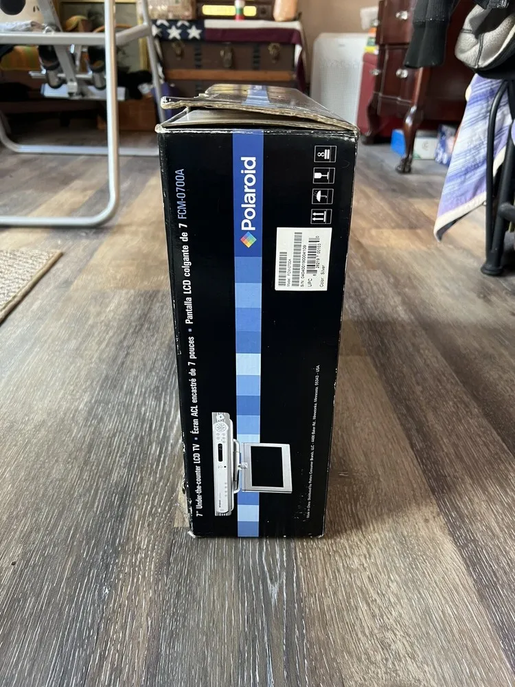The Polaroid FCM-0700A offers clear standard definition video quality typical for CRT technology, providing vivid color reproduction. Its compact 7-inch screen makes it highly portable and space-saving for small environments. The inclusion of composite video and stereo audio inputs supports multiple analog video and audio sources. Robust construction with durable plastics and metals ensures a relatively long lifetime under normal usage conditions. The simple manual controls make operation straightforward without the need for complex navigation menus. Additionally, its compatibility with standard NTSC signals allows easy integration with older media players and broadcast sources.