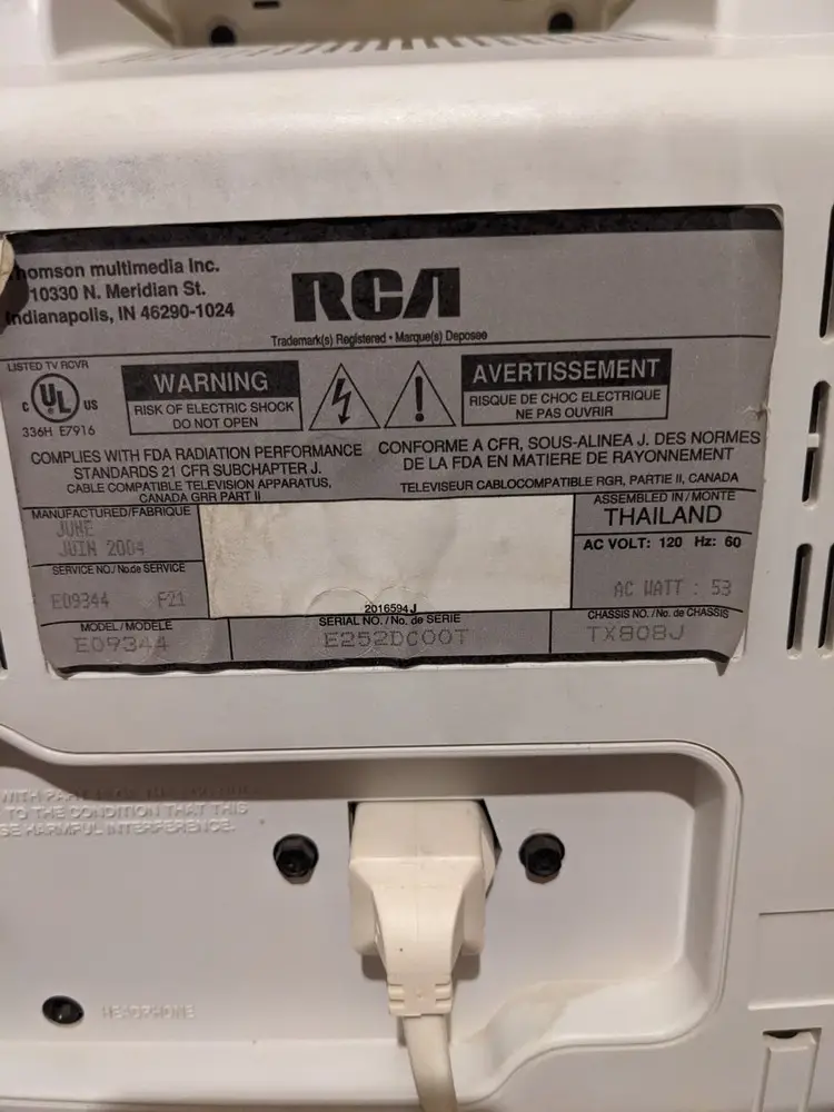 The RCA E09344 uses a cathode ray tube (CRT) display typical of early 2000s televisions.