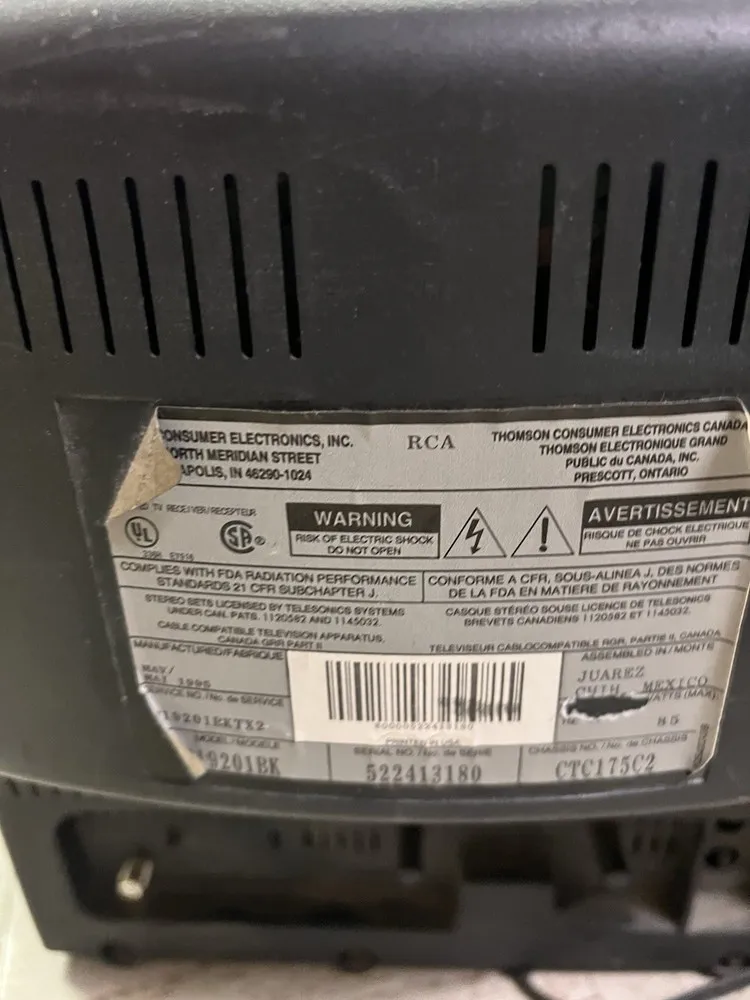 The RCA F19201BK is a traditional CRT television optimized for standard definition viewing. It features an analog CRT display technology with a screen size designed around 19 inches, delivering classic picture quality with strong color accuracy and contrast levels common to this technology era. The unit supports standard NTSC broadcast signals and includes analog inputs for composite video and stereo audio connections. Its internal circuitry is designed around legacy video processing chips to maintain compatibility with older video sources such as VCRs and early gaming consoles. The device includes basic built-in speakers offering mono or stereo sound output suited for small to medium room environments. Despite its analog design, the RCA F19201BK was built for durability with a sturdy chassis and simple user controls for channel tuning and volume adjustment.