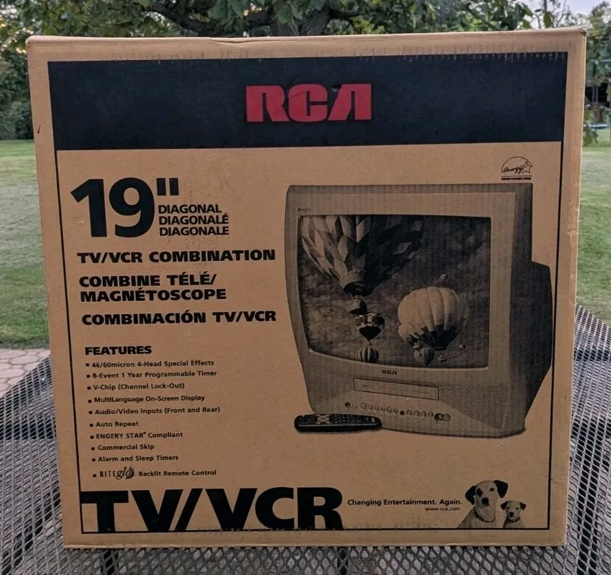The TV is equipped with multiple AV input ports including composite and S-Video, allowing connection to VHS players and gaming consoles.