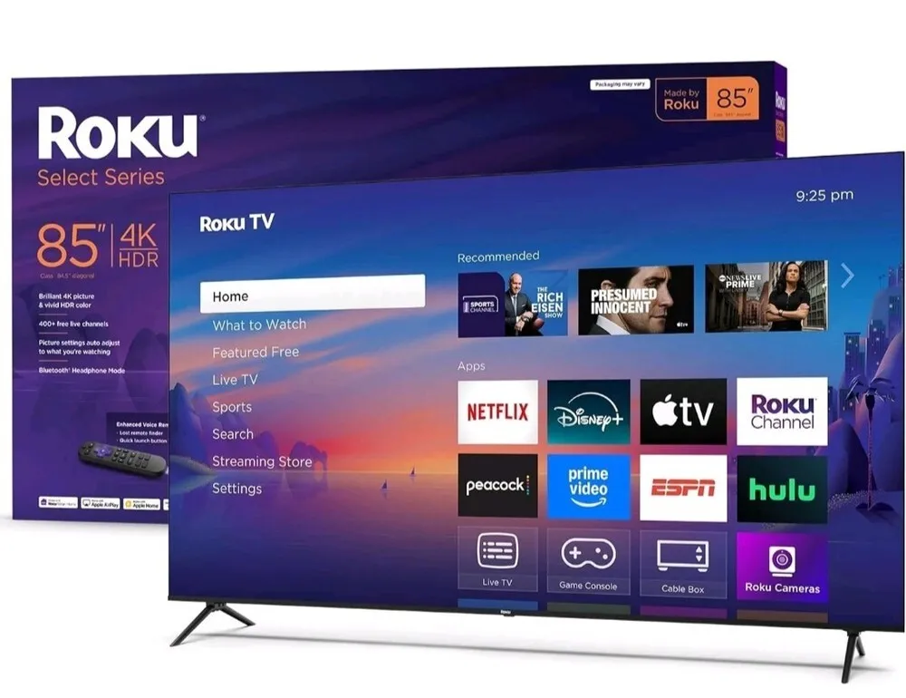 The ROKU Select Series TV integrates a high-definition LED display with built-in ROKU streaming technology for seamless access to thousands of channels and apps. It supports resolutions up to 1080p Full HD providing clear picture quality optimized for everyday viewing. The device operates on a proprietary ROKU OS that ensures a smooth and intuitive user interface with quick navigation and voice search capabilities. Connectivity options include multiple HDMI ports, USB slots for media playback, and dual-band Wi-Fi for stable internet streaming. The TV's hardware includes an efficient processor and adequate RAM to manage streaming demands smoothly. It also features Dolby Audio support to enhance the audio experience, making it a balanced multimedia device for home entertainment.