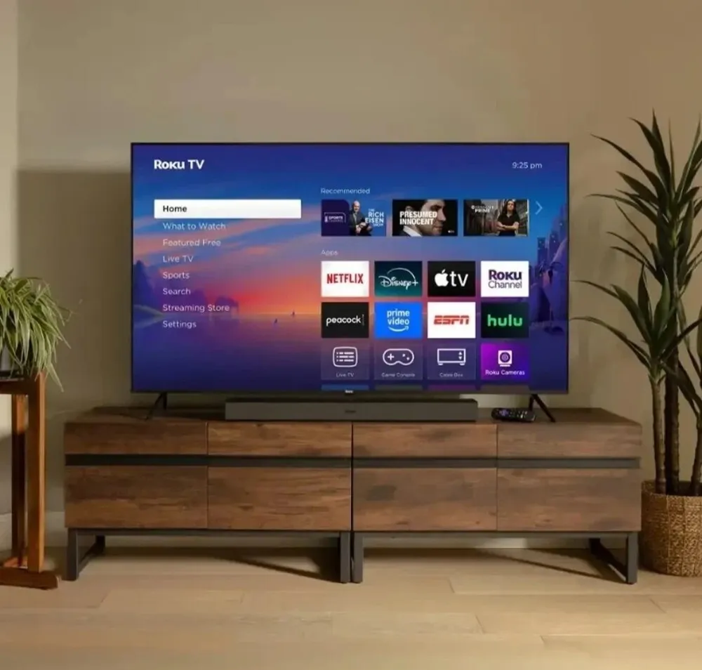 The TV comes pre-loaded with essential streaming apps and the ROKU interface, allowing users to add more apps as desired.