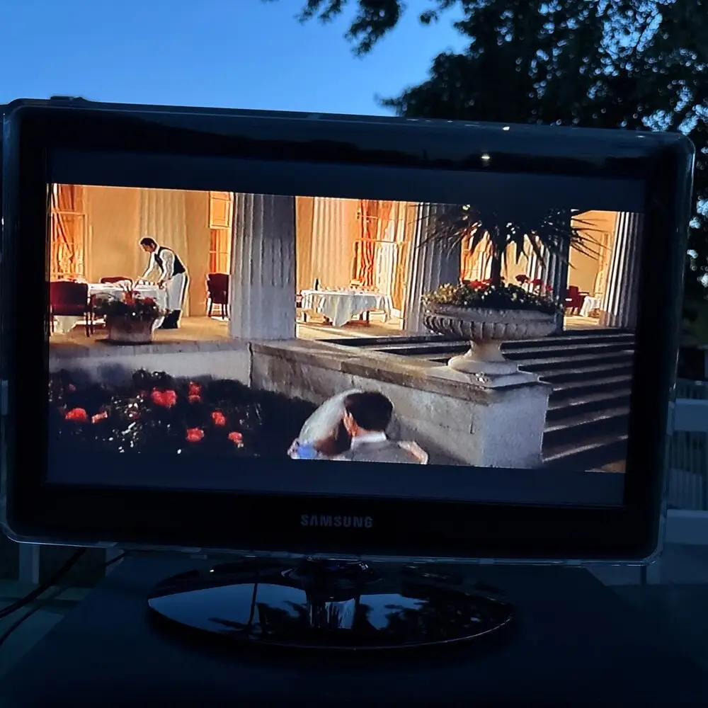 The TV includes HDMI, component, composite video inputs, and an RF antenna input.