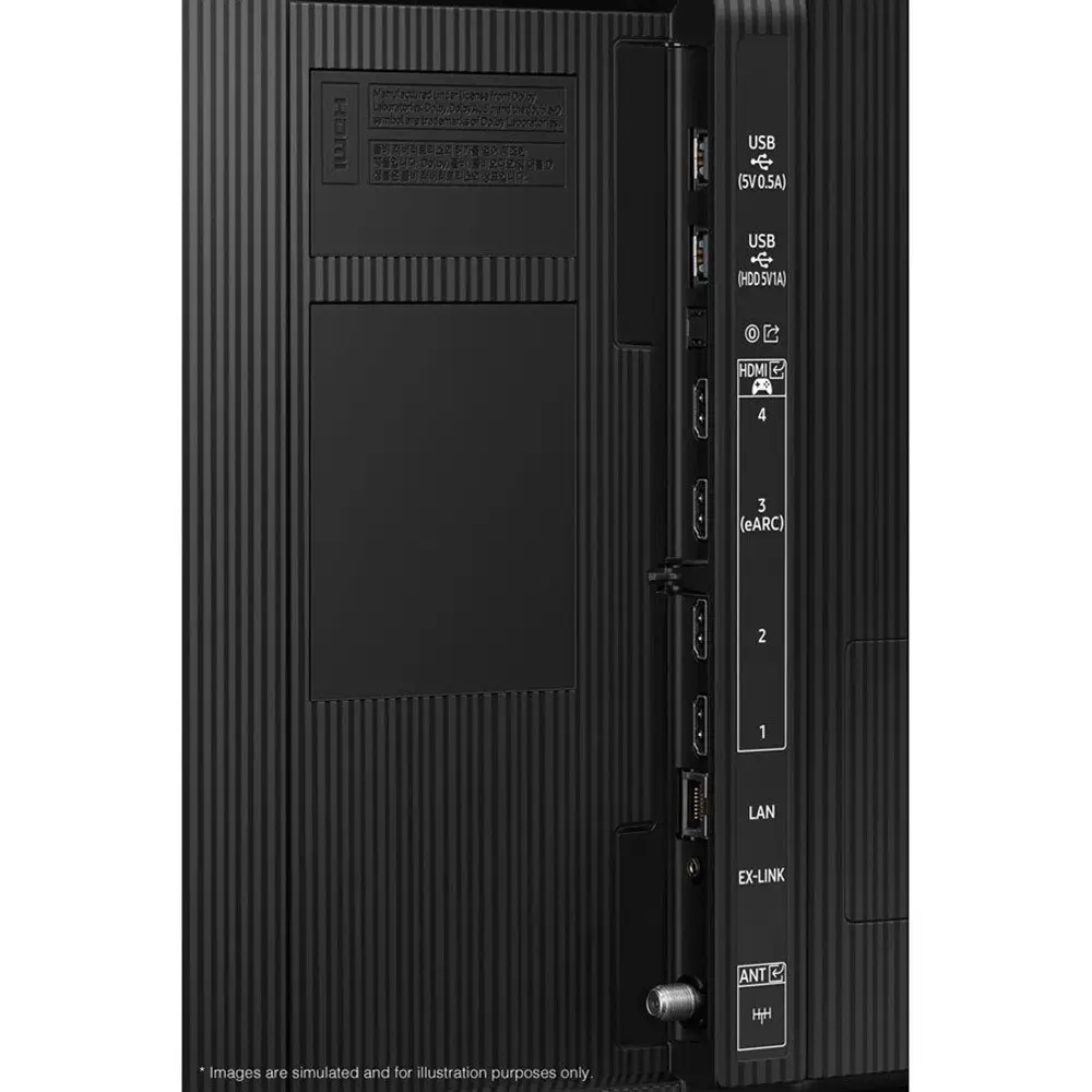 The TV incorporates Object Tracking Sound+ technology to create dynamic audio that follows on-screen movement. It also supports multi-view functionality allowing simultaneous display of different content sources. Connectivity options include Wi-Fi 6 and Bluetooth 5.2 for robust wireless communication. This model offers various smart assistant integrations including Bixby, Alexa, and Google Assistant for voice control. Energy consumption is optimized with Eco Sensor. Overall, it is designed as a premium flagship display balancing performance, size, and smart capabilities for immersive entertainment in large spaces.