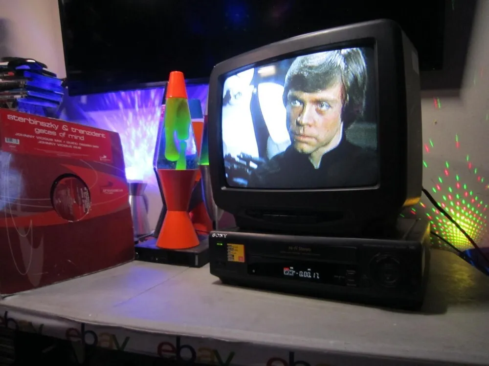 This model includes AV input jacks suitable for connecting devices like VCRs or game consoles.