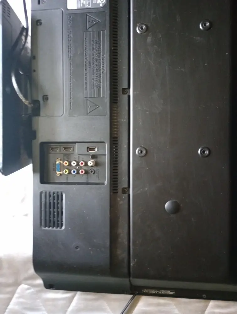 The TV includes HDMI, component, composite, and RF inputs.