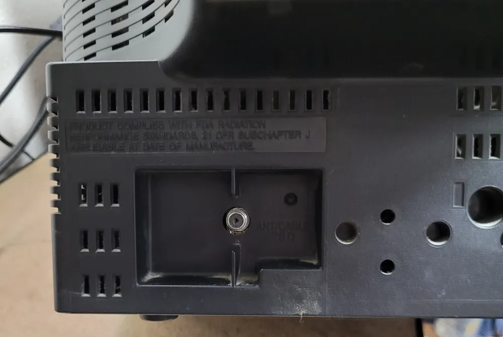 The TV includes an RF antenna input and composite video input for connecting external devices.