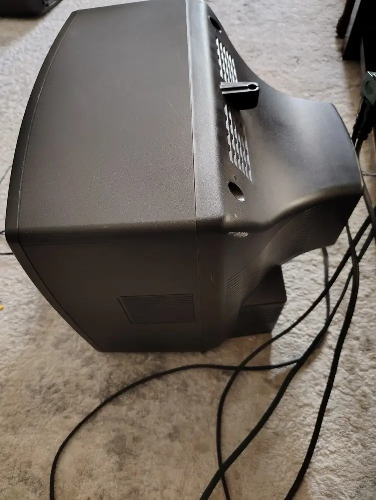 It uses a 13-inch CRT (Cathode Ray Tube) screen with a 4:3 aspect ratio.