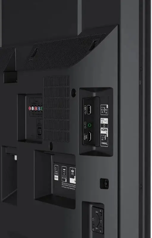 Connectivity options include multiple HDMI 2.1 ports supporting 4K@120Hz, USB ports for media playback, Wi-Fi 5, Bluetooth 5.0, and an Ethernet port, enabling versatile connection to external devices and networks.