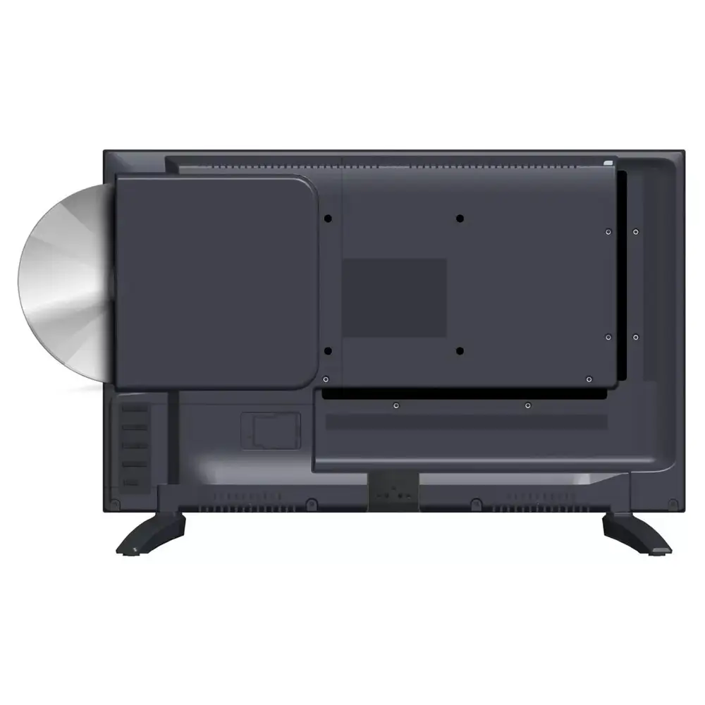 The DVD player supports standard DVD-Video discs including DVD-R and DVD+R formats but does not support Blu-ray or HD DVD.
