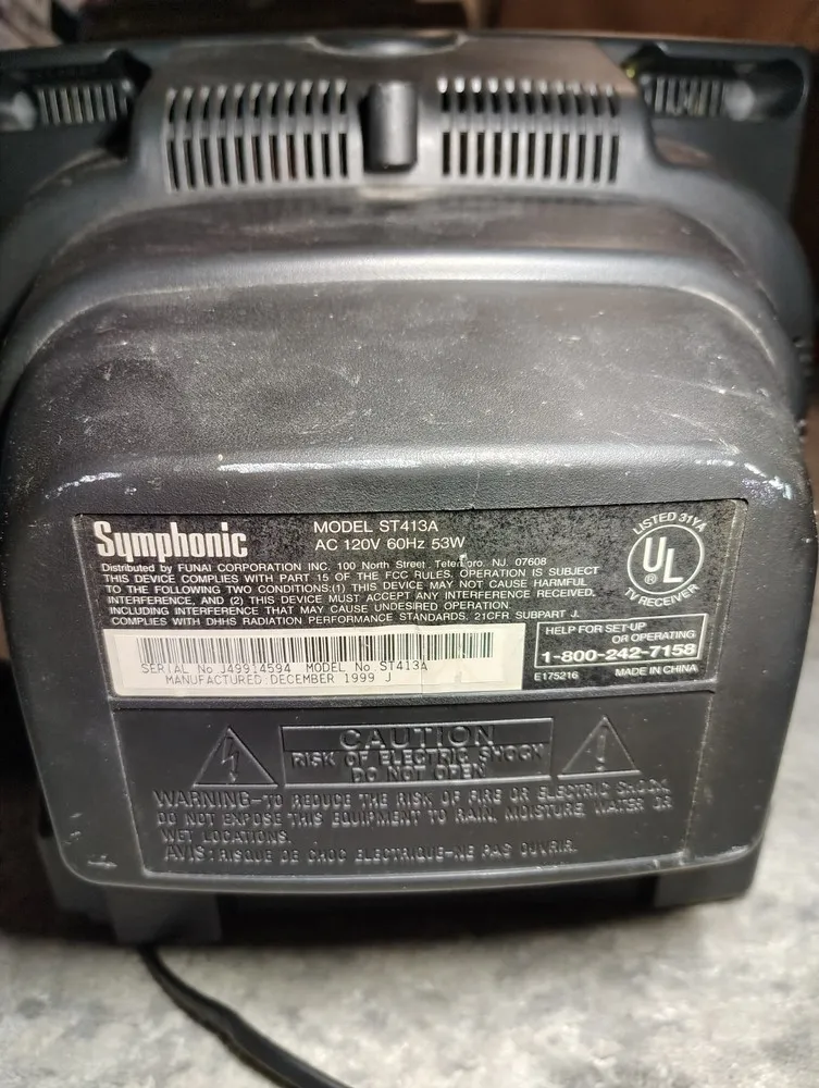 The Symphonic ST4813 uses cathode ray tube (CRT) display technology common in televisions from the early 1990s.