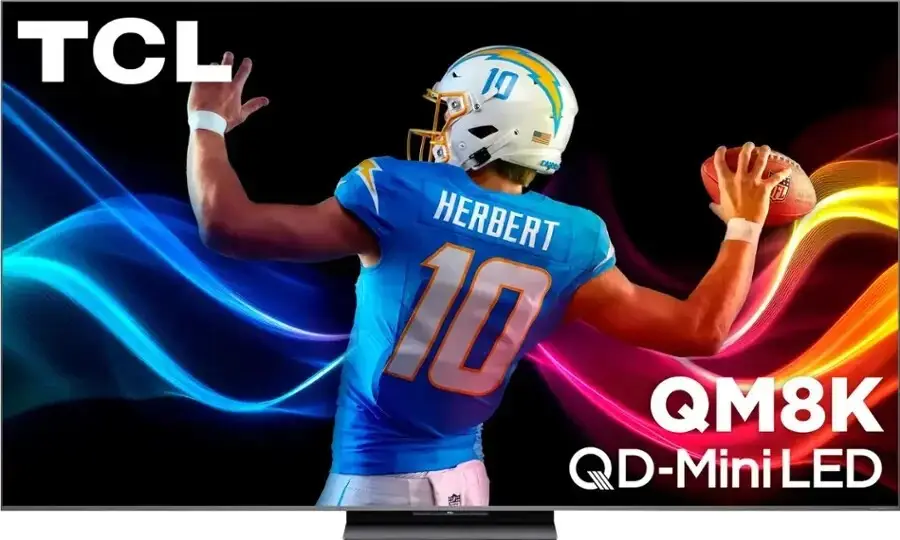 The TCL 65QM8K is a 65-inch Smart TV featuring a QLED 4K UHD display that delivers vibrant color accuracy and high brightness levels through Quantum Dot technology. It supports HDR10+ for enhanced dynamic range, providing excellent contrast and detailed visuals.