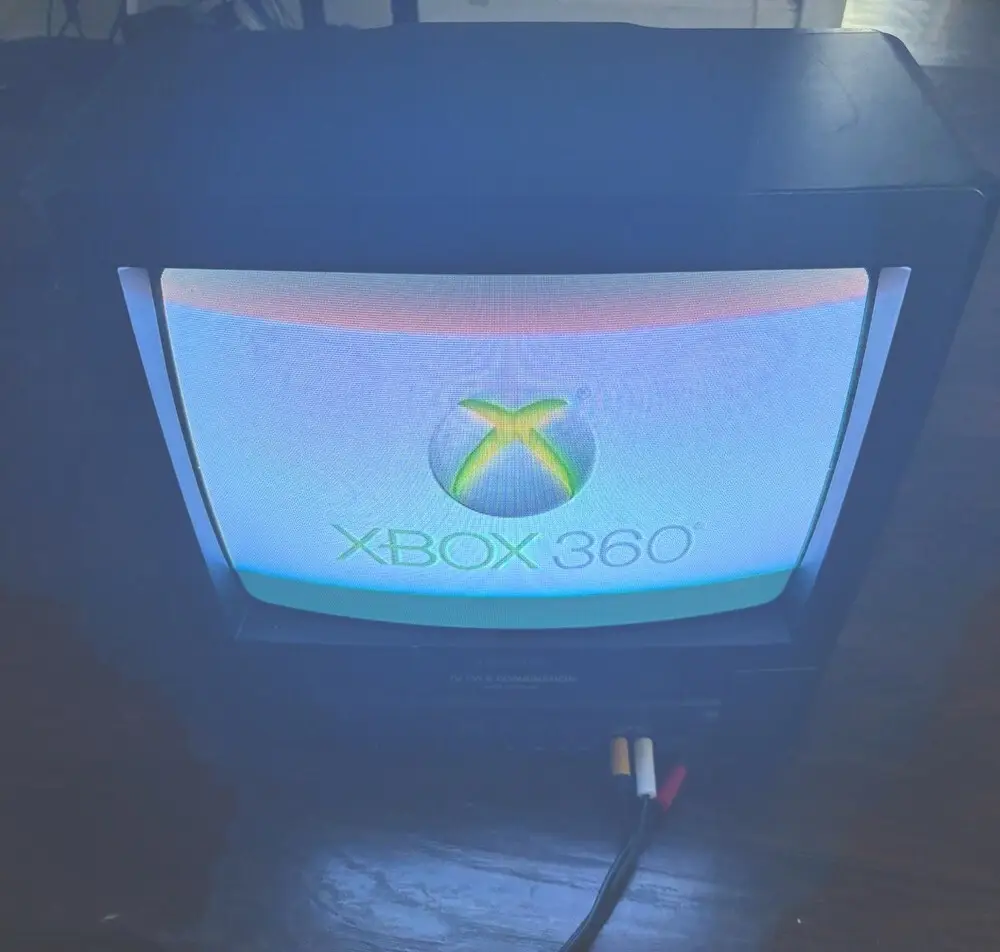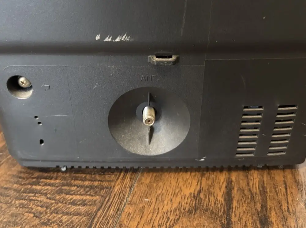 The TV includes composite video input and RF antenna input, common for TVs from its release period.