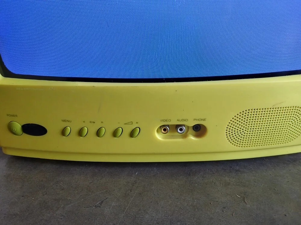 The TV typically includes composite video input and RF antenna inputs for connecting basic devices.