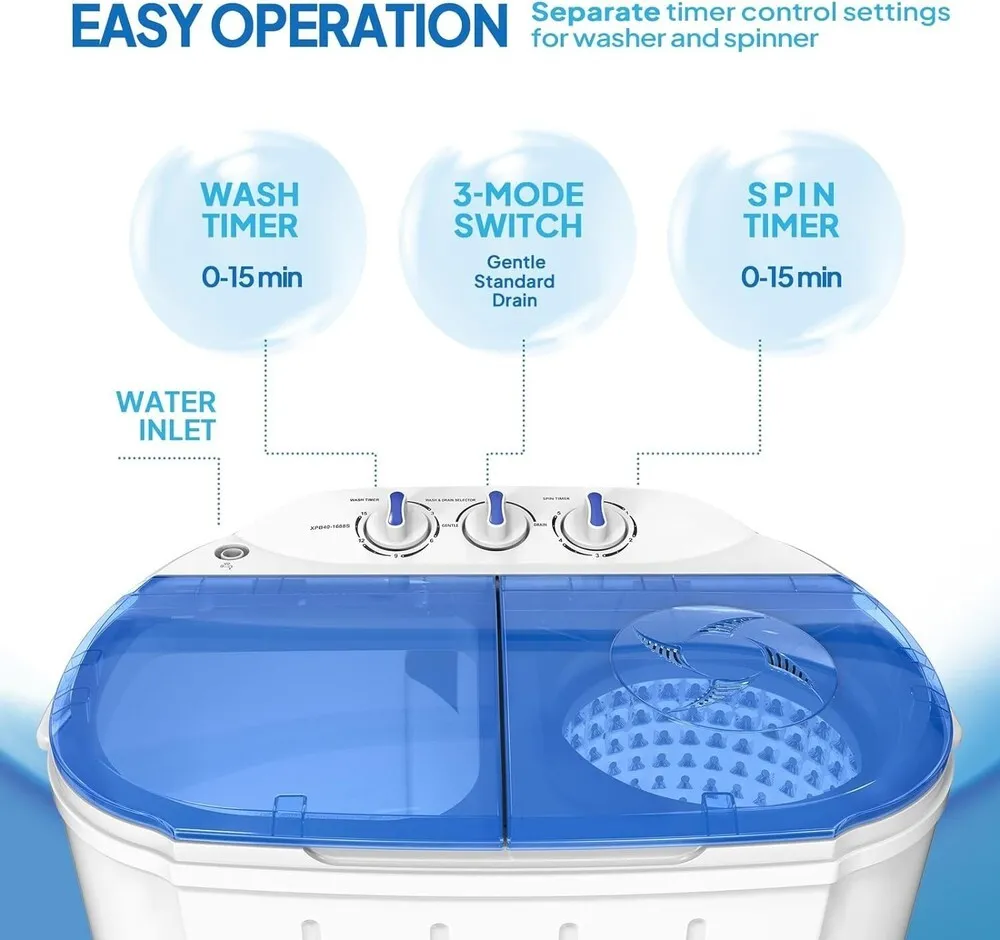 The machine includes multiple wash cycles customizable for fabric type and soil level, employing an energy-efficient motor system.
