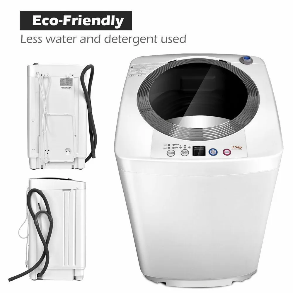 The washing capacity is approximately 7 kg (15.4 lbs), suitable for small to medium laundry loads.