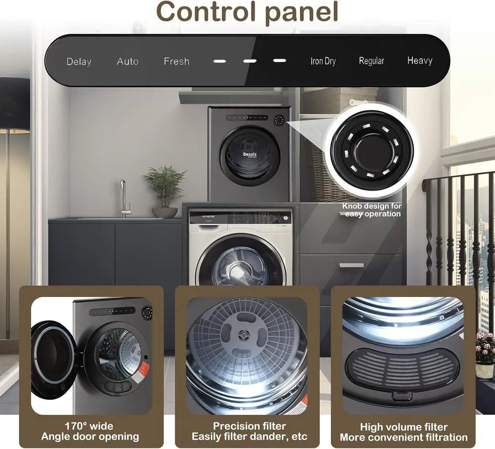 The Dessiz DTD10-GREY is a compact washer and dryer combo model designed for efficient home laundry care. It features a front-loading drum with a capacity optimized for small to medium household loads. The appliance incorporates advanced moisture sensors and automatic drying cycles to enhance energy efficiency and fabric care. Equipped with multiple wash programs, it supports a variety of fabric types and washing requirements. The control panel offers intuitive digital interfaces for easy cycle selection and customization. Its grey finish complements modern kitchen or laundry room aesthetics while providing durable exterior protection.