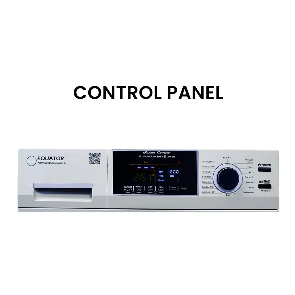 The Equator EZ 4800 V is a compact all-in-one washer and dryer designed to deliver effective laundry solutions within limited spaces. It employs a vertical orientation, making it suitable for small apartments or tight laundry areas. The unit features a combined wash and dry cycle with a total capacity of approximately 12 lbs, handling both washing and drying without requiring transfer. Its controls allow for various wash cycles tailored for different fabric types, utilizing modern motor technology for efficiency. The appliance operates on standard household voltage, supporting ease of installation with quick water connections. Energy efficiency and water usage have been optimized to minimize operational costs while maintaining performance.