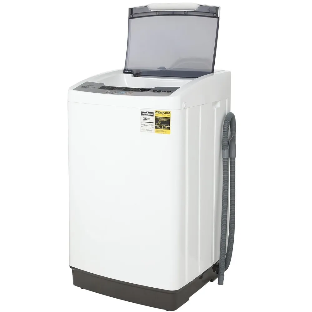 The drum has an approximate capacity of 3.5 cubic feet, suitable for medium laundry loads.