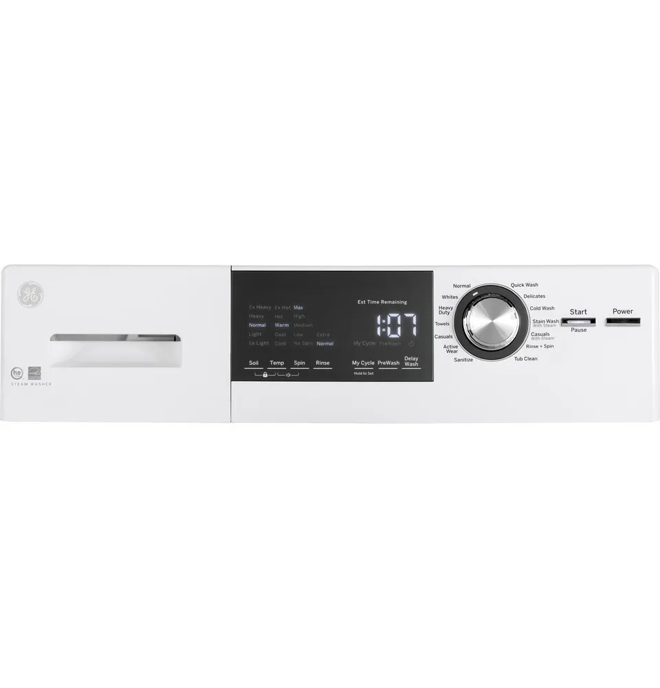 The GE GFW148SSMWW offers excellent cleaning performance using advanced Steam cleaning technology.
