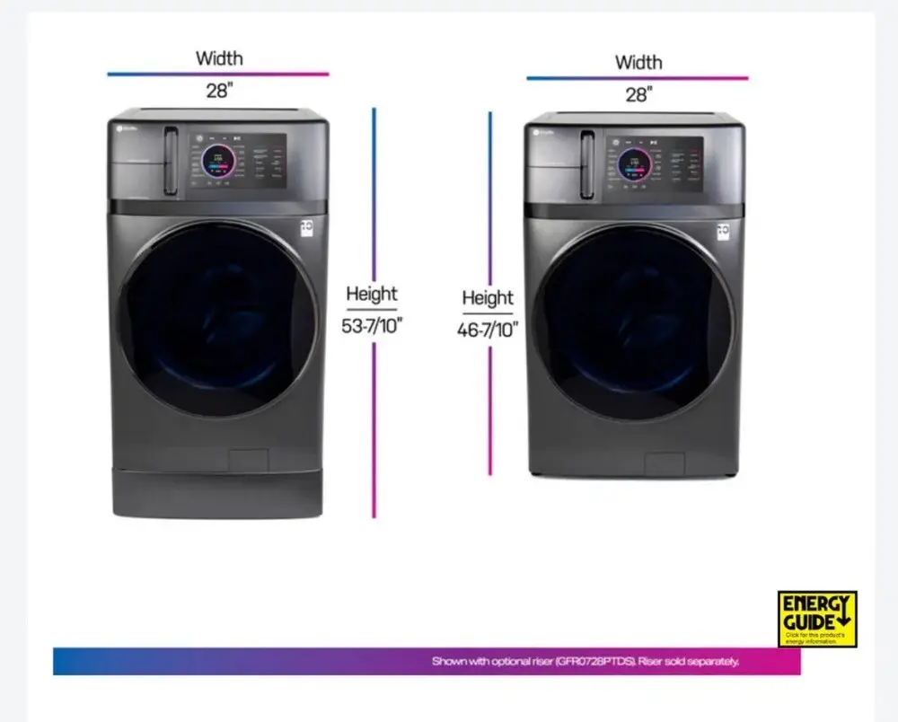 The GE PFQ97HSPVDS is a technologically advanced washer dryer combo designed for efficient laundry cycles combining both washing and drying functions in a single unit. It features a front-loading drum optimized for capacity and fabric care, utilizing advanced sensors to regulate water and energy consumption according to load size. The unit employs multiple washing cycles including delicate, heavy-duty, and quick wash to accommodate different fabric types and soil levels. Integrated drying functions use precise temperature control to prevent fabric damage while ensuring thorough drying. Its intuitive electronic control panel offers programmable settings and cycle customization for user convenience. The compact design with durable components ensures longevity and space-saving placement within residential laundry spaces.