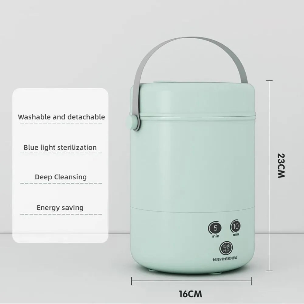 It employs a standard single-phase electric motor coupled with a direct drive system for agitation.