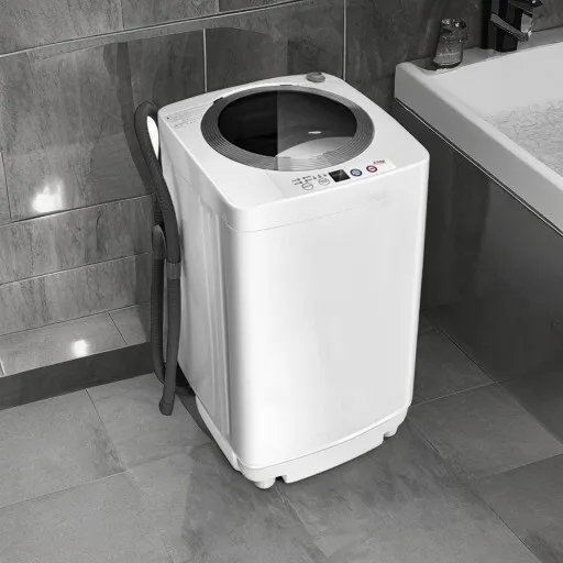 The Giantex Mini Washing Machine gsd-H01-1363A stands out due to its compact size, making it highly suitable for limited spaces. It uses less water and energy compared to full-sized washers, offering a cost-effective laundry option. The model provides multiple wash programs, which increase its versatility for different fabric types and soil levels. Its lightweight and portable design allows easy movement and storage when not in use. Additionally, the machine's simple control panel simplifies operation for users of all experience levels. The build quality ensures durability despite its small size, providing reliable performance over time.