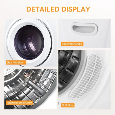 The Gleedelish CD002-265 full size clothes dryer is engineered with a robust 7.0 cubic feet capacity drum, optimized for large loads ensuring efficient drying cycles.