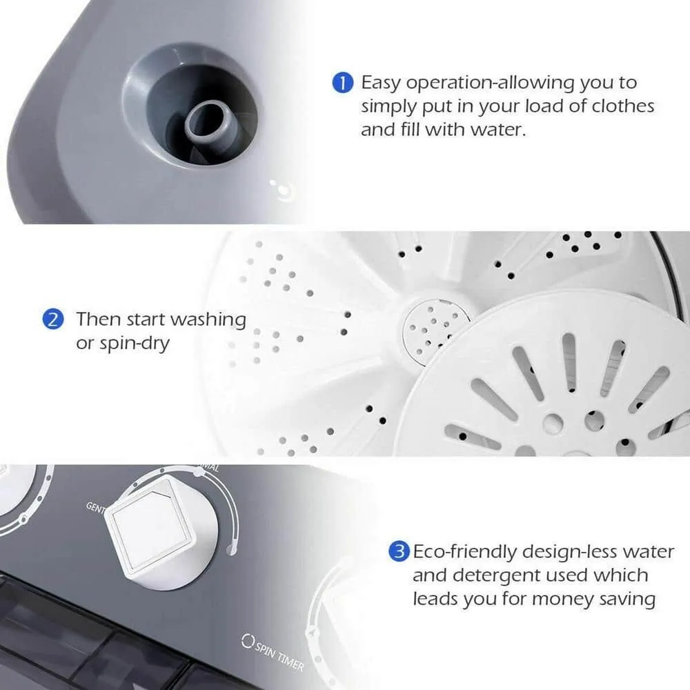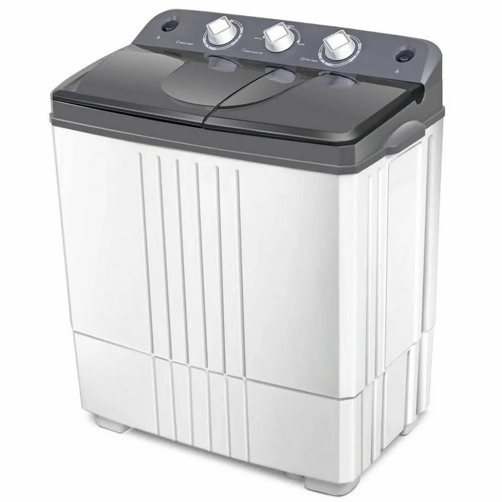 The Gymax GYM06033 is a compact washer dryer designed for efficient washing and drying performance in limited spaces. It features a front-loading drum with a capacity optimized for small to medium households. This model incorporates temperature, spin speed, and wash cycle customization to suit various fabric types. The control panel includes digital and mechanical elements for easy operation. The appliance uses a combination of water and electricity designed to maximize energy efficiency. Its construction utilizes corrosion-resistant materials ensuring durability in harsh laundry environments.