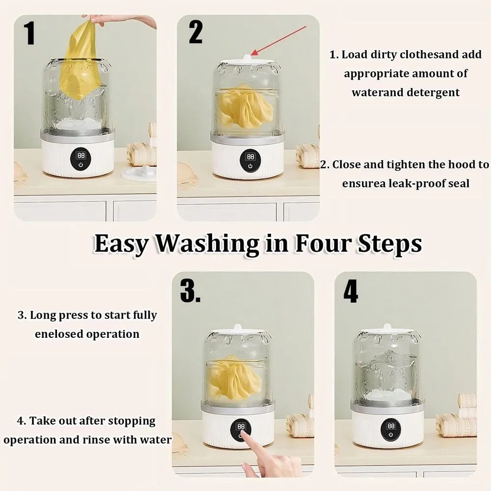 The portable design allows use anywhere without reliance on full-sized washing machines. It offers energy-efficient operation thanks to its low-power motor and reduced water consumption. The device is lightweight, making it easy to carry during travel or outdoor activities. It provides quick washing cycles, reducing the time needed for laundry. The simple interface makes it accessible even to users unfamiliar with complex appliances. The sealed design prevents water leakage during use.