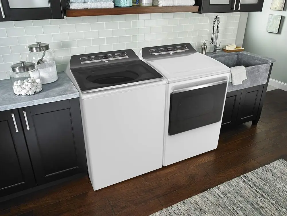 It operates quietly with sound-reduction technologies, making it suitable for laundry rooms near living spaces.