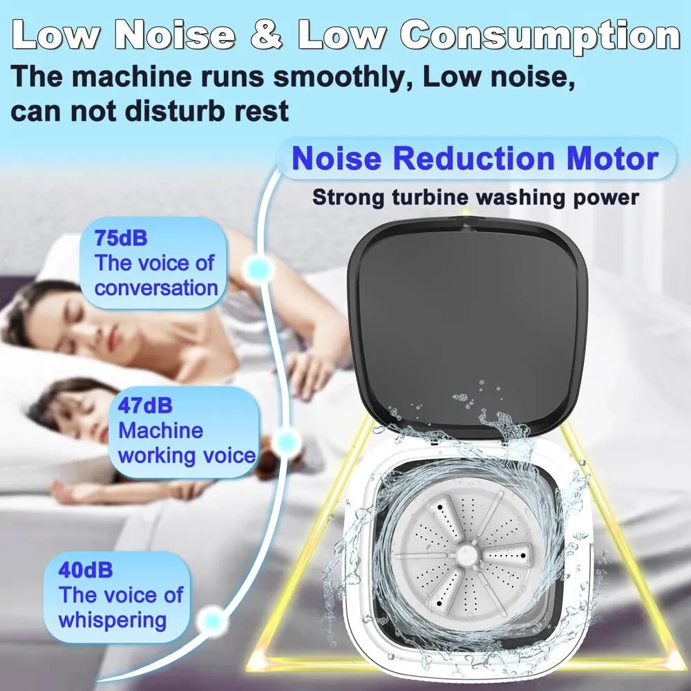 The mini washer is highly portable, making it perfect for apartment living, RVs, or travel.