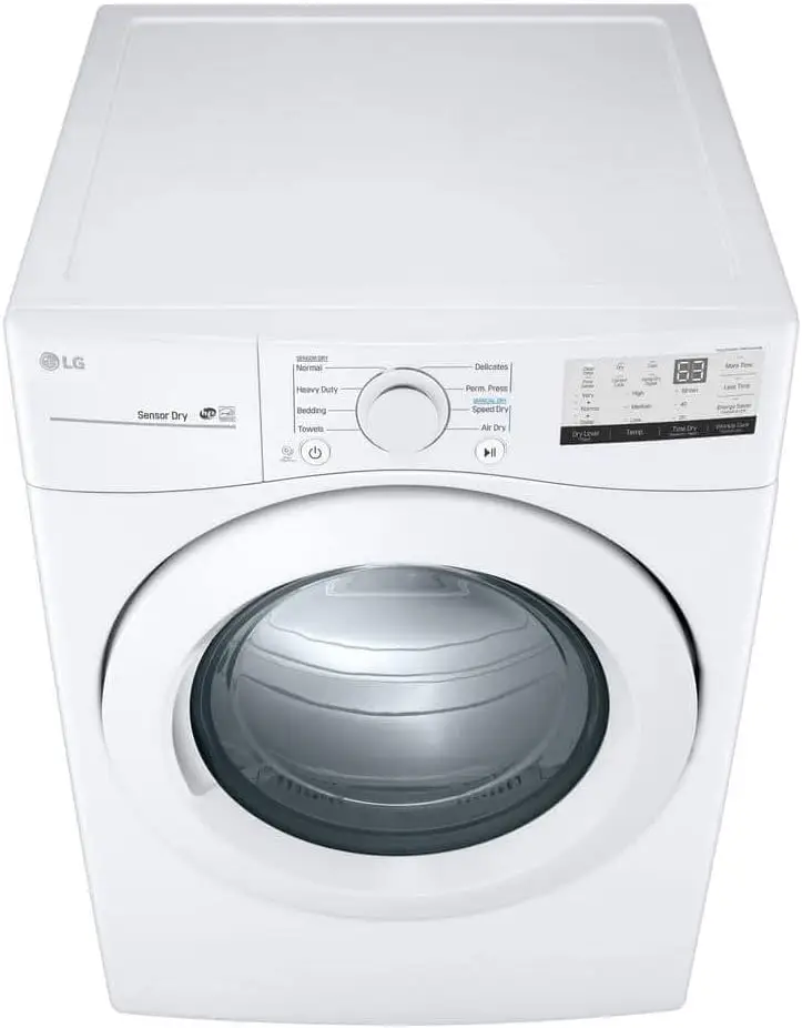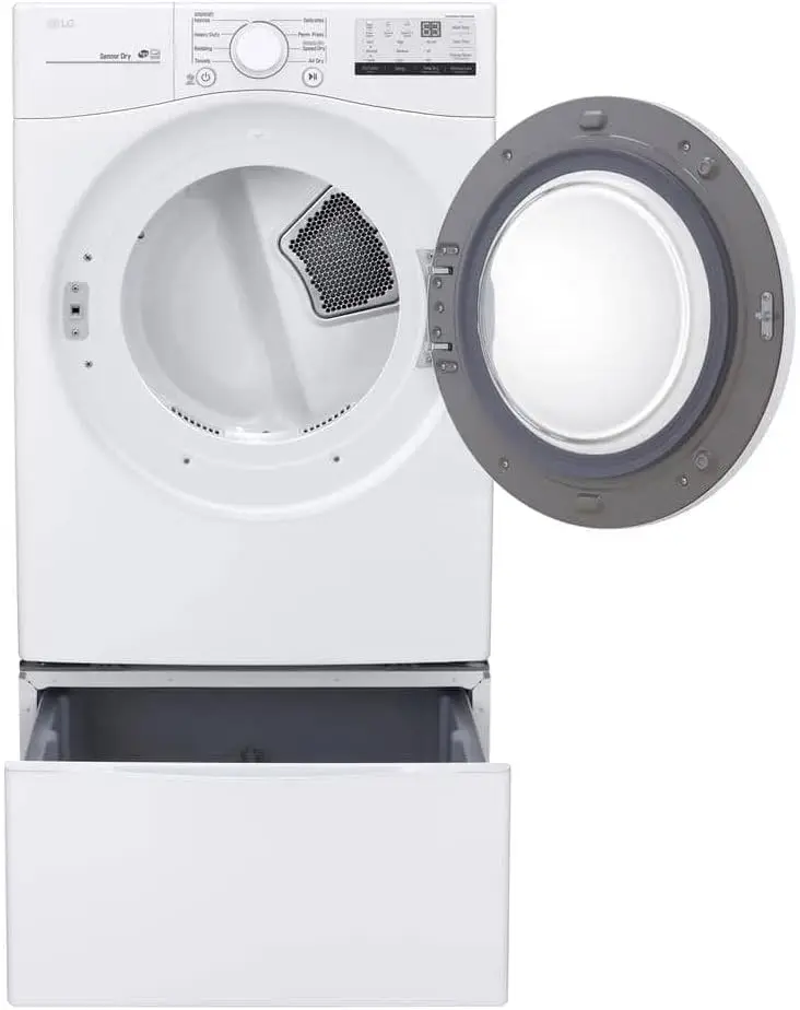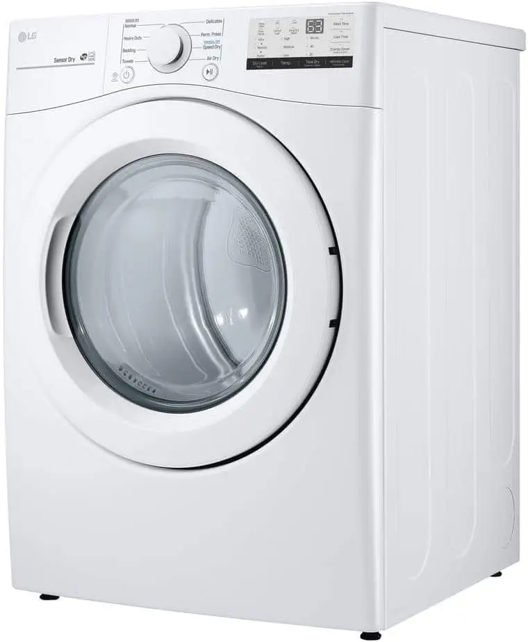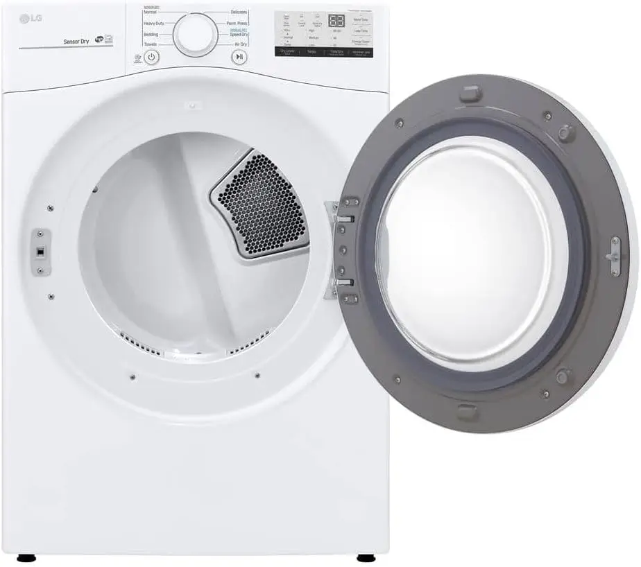 The LG DLE3400W features approximately a 7.4 cubic feet drum capacity, suitable for typical household laundry loads.
