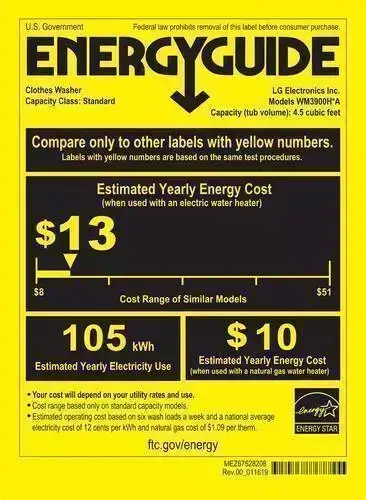 Is the LG WM3900HBA energy efficient?