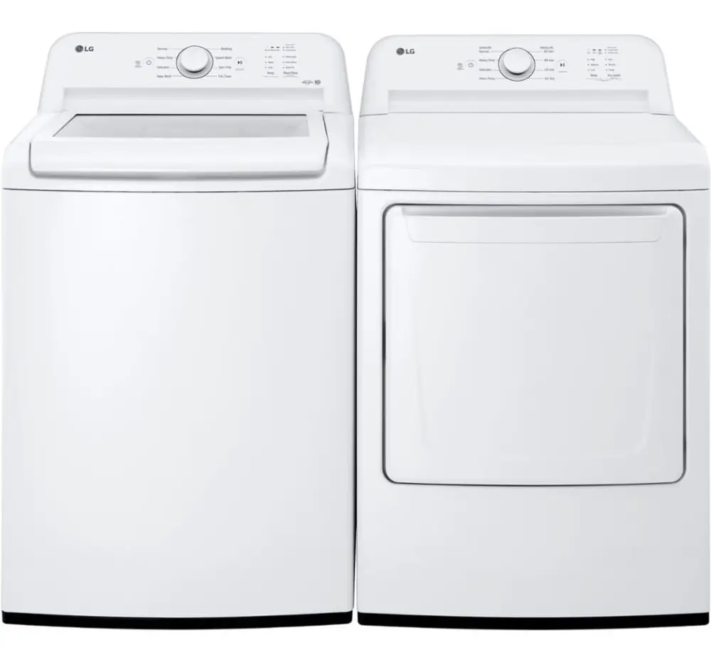 Both units incorporate LG's motor technologies optimized for reliability and energy efficiency, with the washer using a direct drive motor to minimize noise and vibration during operation.
