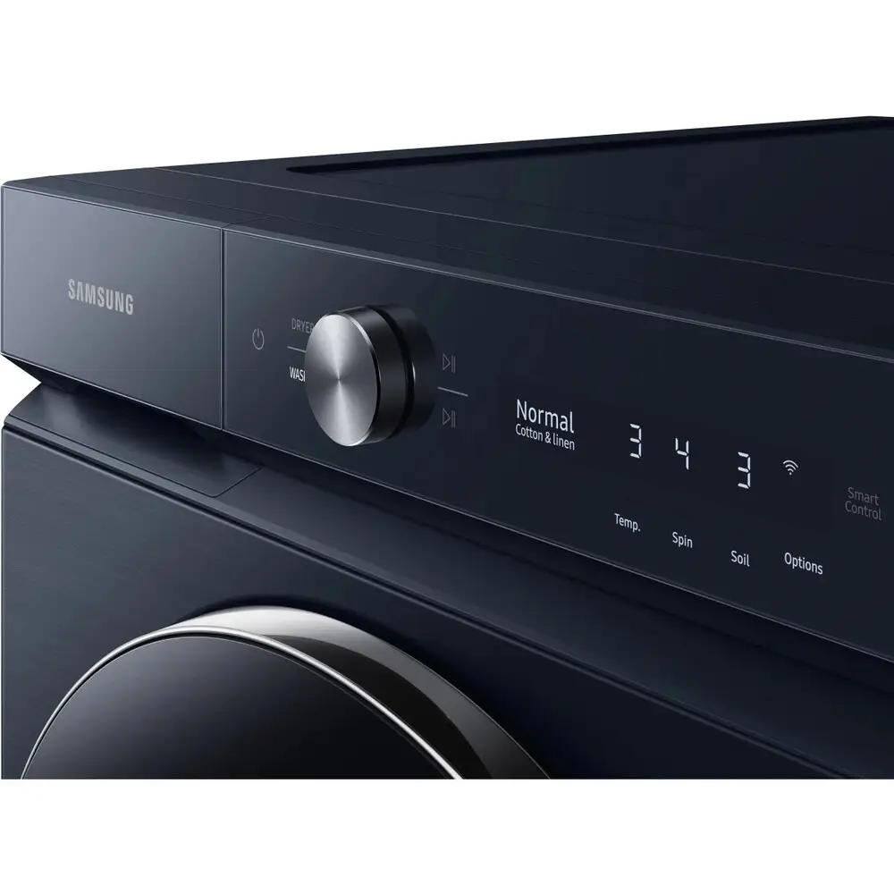 The Samsung WF53BB8900AD is a technologically advanced washer dryer designed for efficient laundry processing. Featuring a 5.3 cu. ft. capacity, this model utilizes AI-powered Wash technology that detects fabric type and dirt levels to optimize wash cycles. It operates on a front-load system with energy-efficient Digital Inverter Motor to reduce noise and vibration. The machine supports multiple wash and dry cycles, including steam cleaning and sanitize options, ensuring thorough cleaning and hygiene. Integrated WiFi connectivity allows remote control and monitoring through the SmartThings app. Its design incorporates a user-friendly LED display and Smart Control controls for seamless operation.