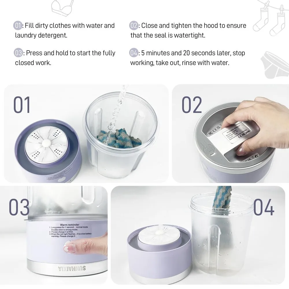 The compact design allows portability and ease of storage, making it suitable for users with minimal washing needs.