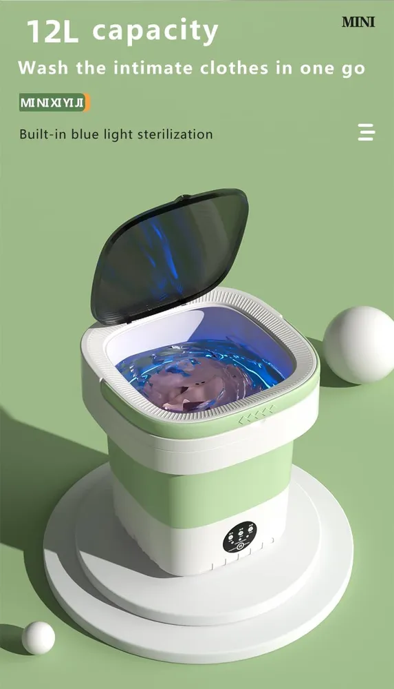 The Folding Washing Machine supports small laundry loads, typically sufficient for 1-2 persons or light daily washing needs.