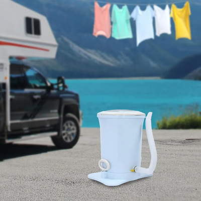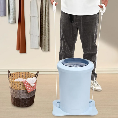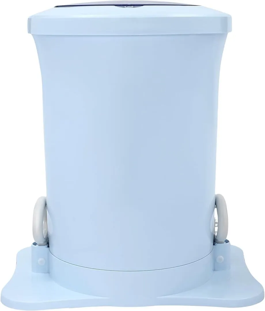 The dryer is lightweight with built-in handles, designed to be easily moved and used in various locations such as dorms and RVs.