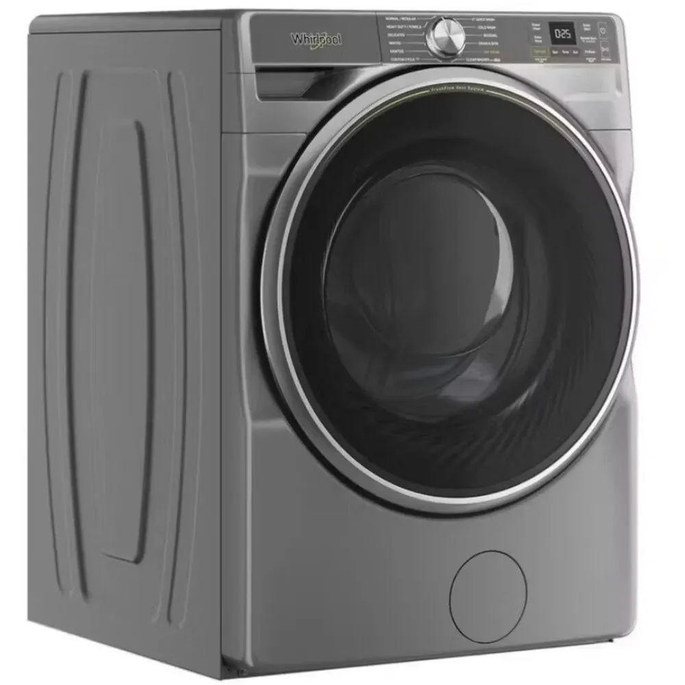 The Whirlpool WFW6720RR is a front-load washing machine designed for efficient laundry processing with advanced technologies. It operates with a 24-inch wide frame and a high-efficiency motor supporting various wash cycles for different fabric types. The machine features a 4.3 cubic feet capacity, suitable for medium to large household loads. Equipped with the Load & Go dispenser system, it holds enough detergent for multiple cycles, enabling convenience and reducing refill frequency. It supports SpeedWash technology cutting wash times while maintaining cleaning performance. The washer includes an intelligent sensor system to optimize water usage and cycle duration based on load size.