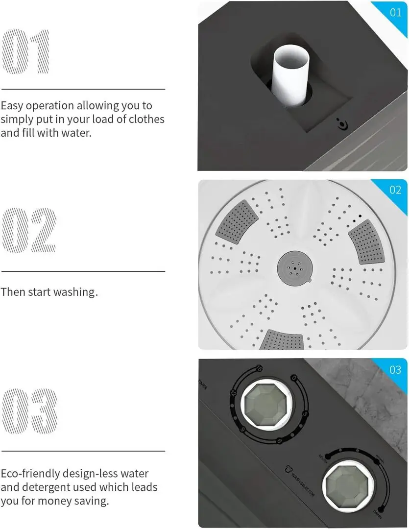 Included Components | 1 x Drain Pipe, 1 x Twin Tube Washing Machine with Built-in Drain Pump, 1 x Water Inlet |