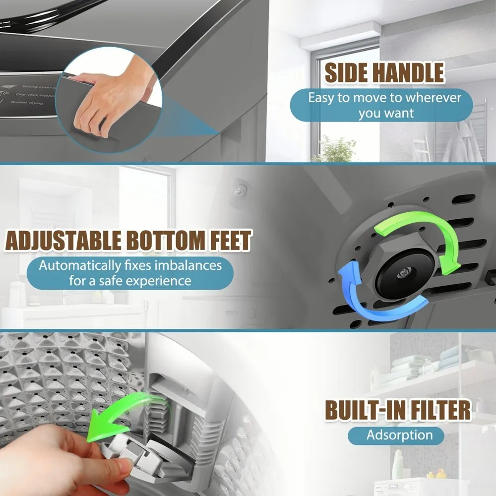 It uses a single-speed induction motor with belt drive to operate the drum and agitator.