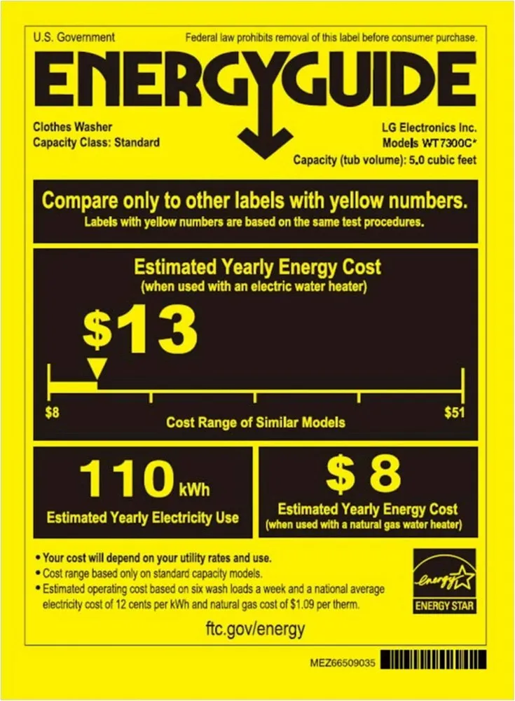 The LG WT7300CW washer typically offers a capacity of around 5.0 cubic feet, suitable for medium to large laundry loads.